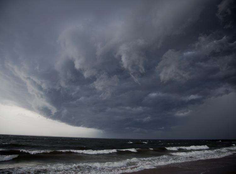 É muito importante não ficar no mar na hora do temporal! Saia imediatamente do mar ao avistar as nuvens carregadas chegando.